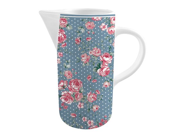 Grande jarro de porcelana com alça e desenho de Julia por todo o lado.