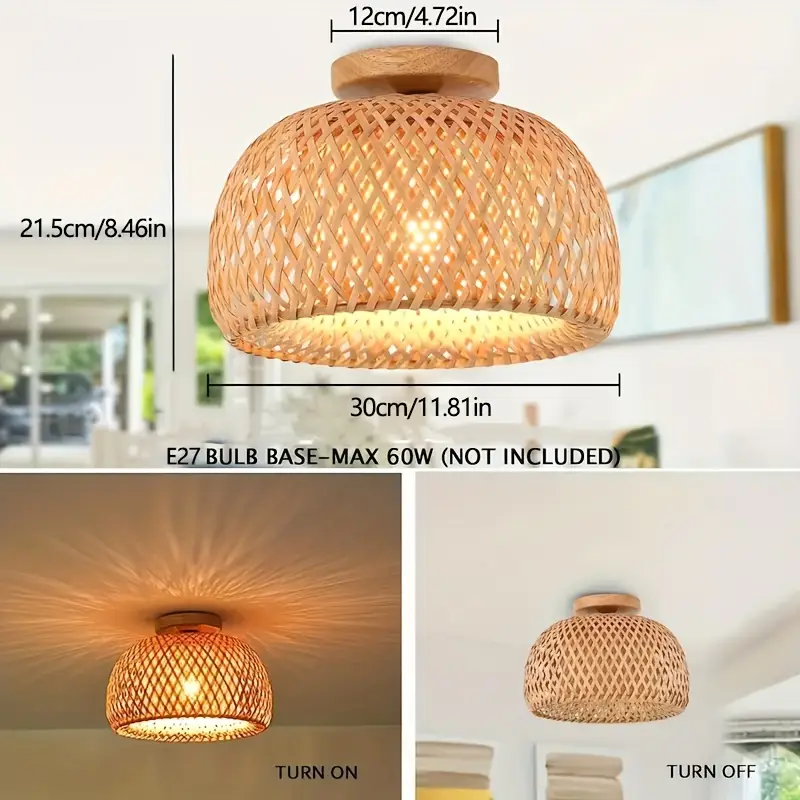 Luz de teto de bambu tecido, base de lâmpada E27, diâmetro 30cm/11.81in,
