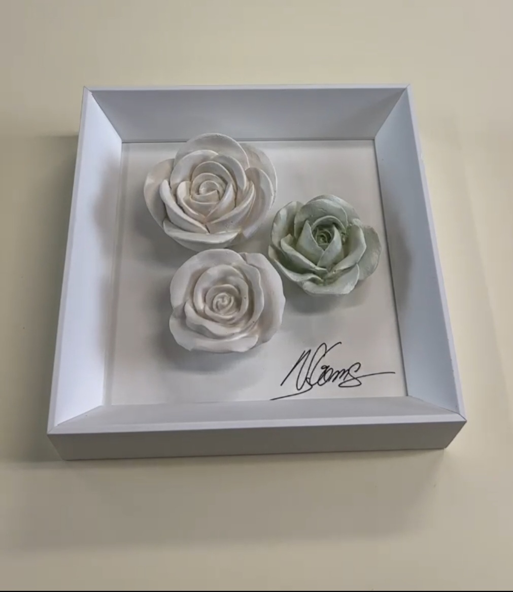 Quadro 17 x 17 cm moldura larga branco mate / Rosas 1