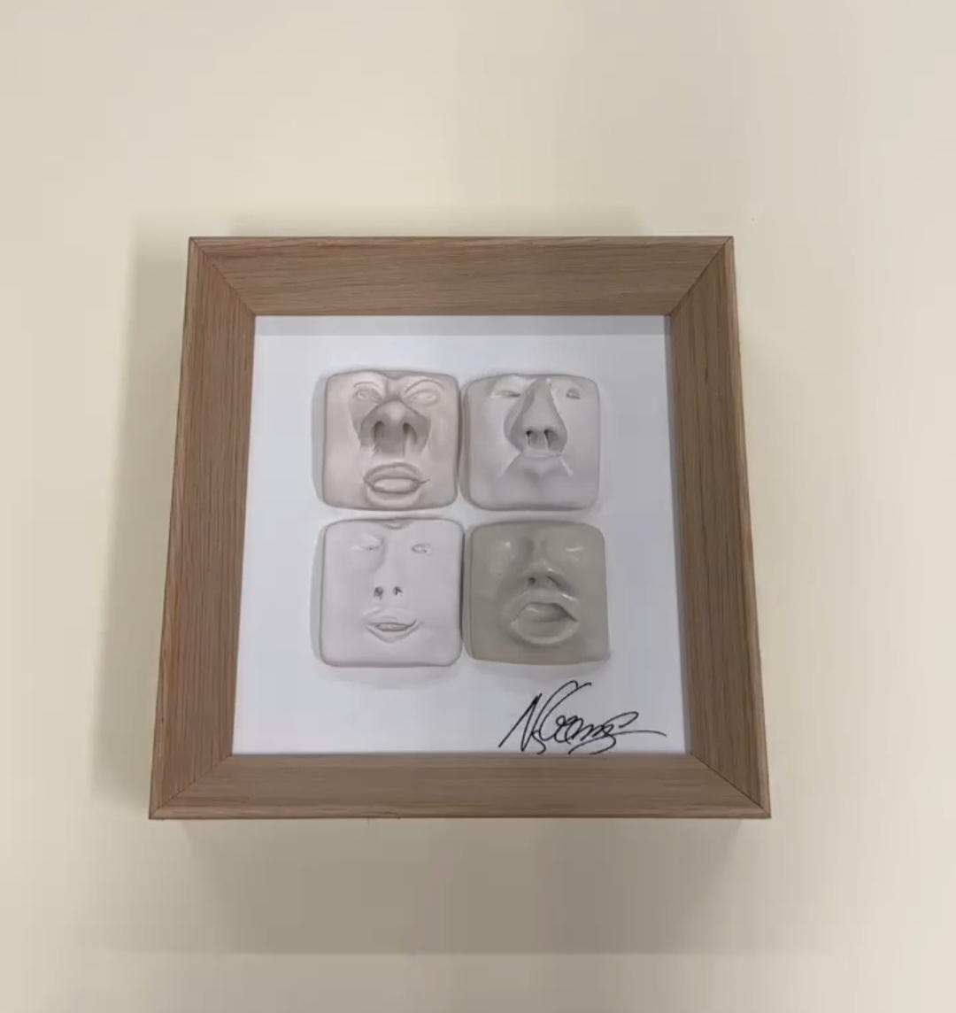 Quadro 17 x 17 cm moldura larga carvalho natural / rostos 2